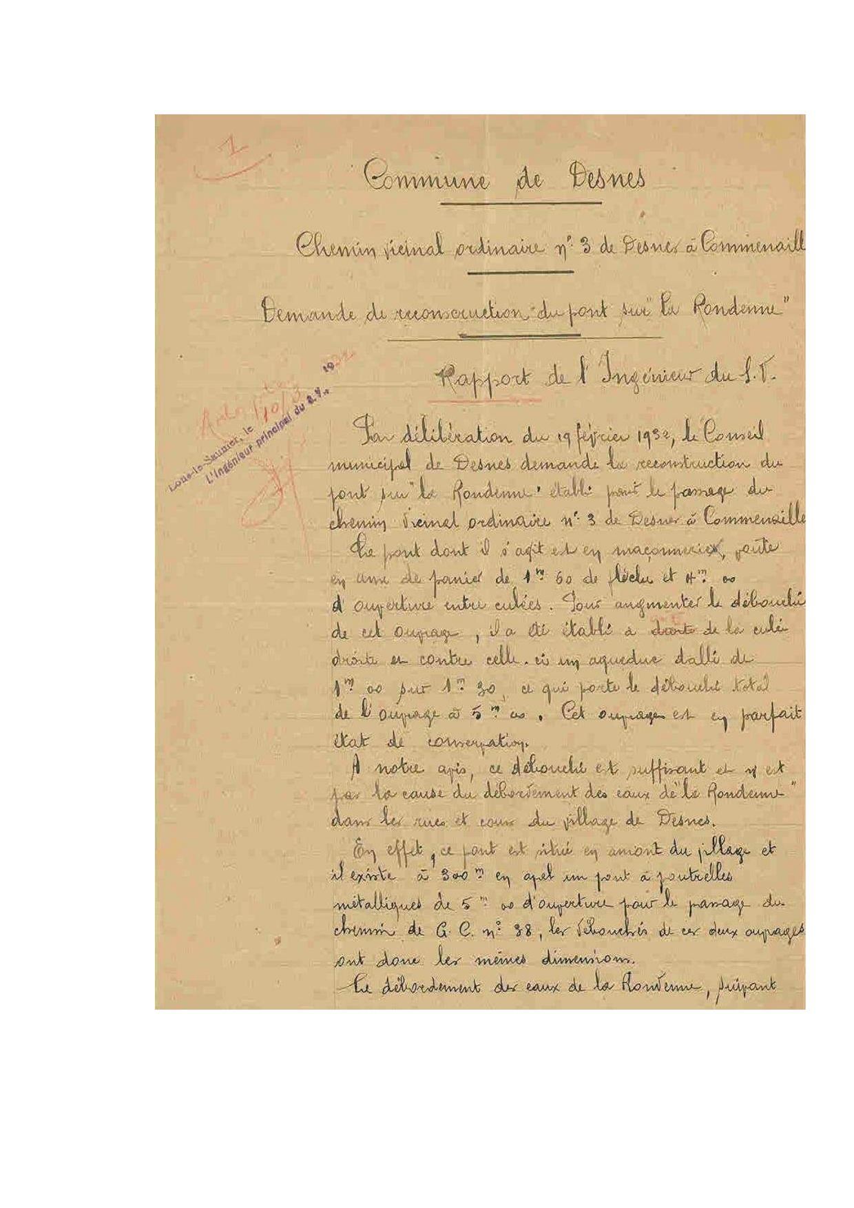 Ponts-et-Chaussées Pont de Desnes avant-projet 1932