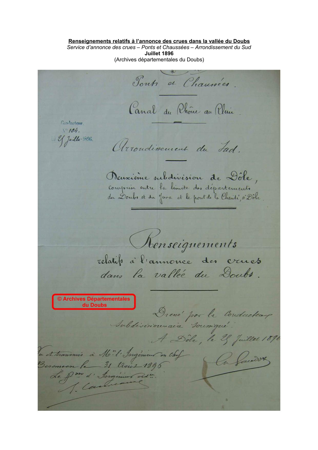Service d’annonce des crues – Ponts et Chaussées – Arrondissement du Sud