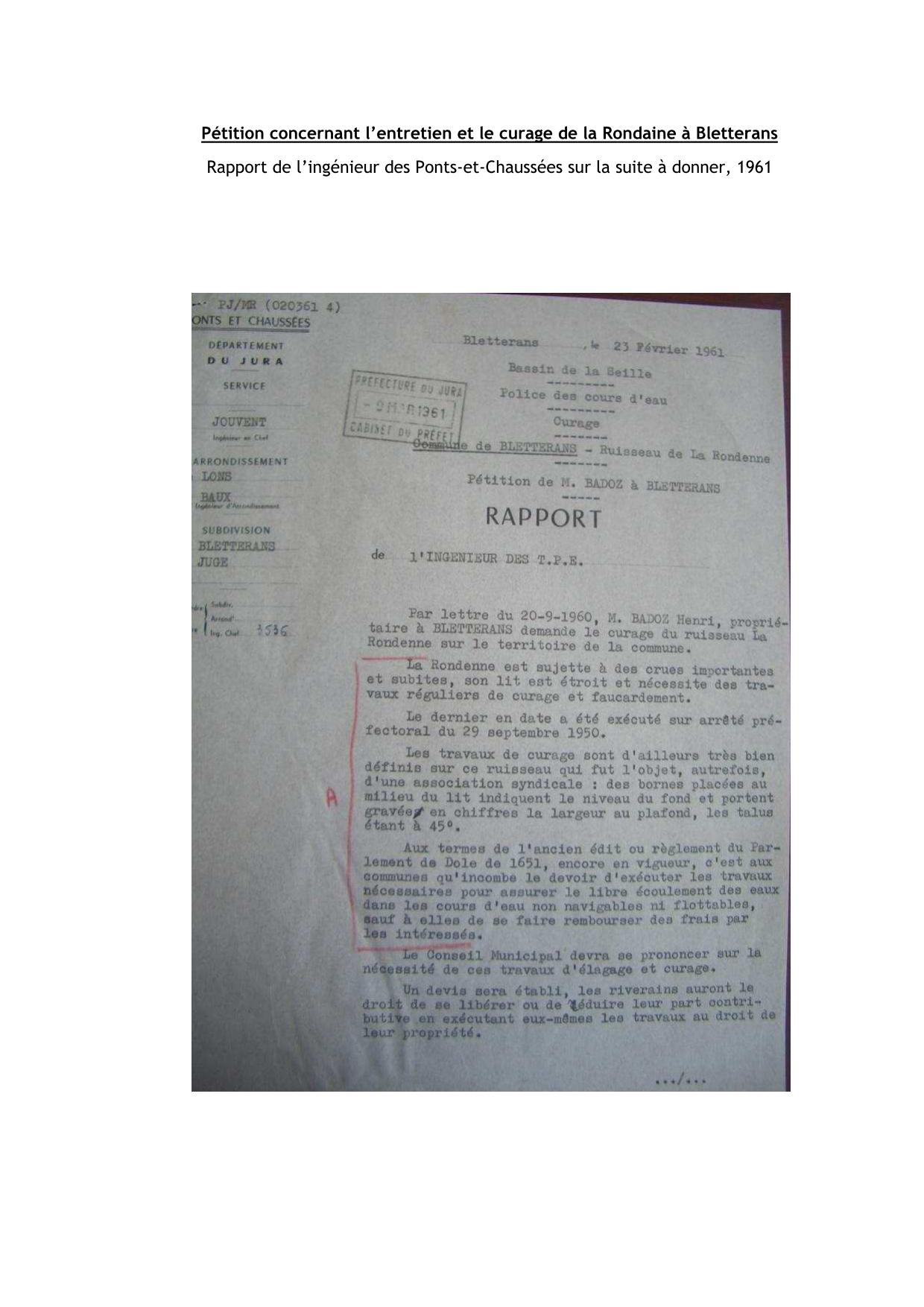 Pétition entretien de la Rondaine Bletterans Ponts et Chaussées