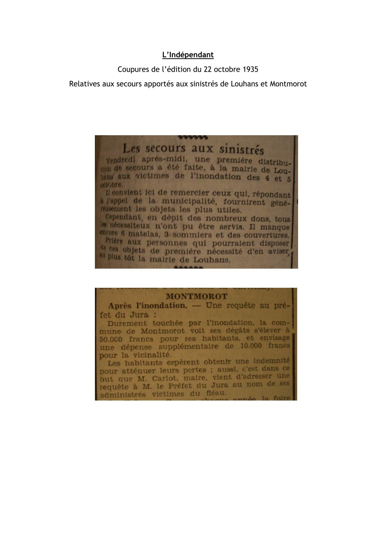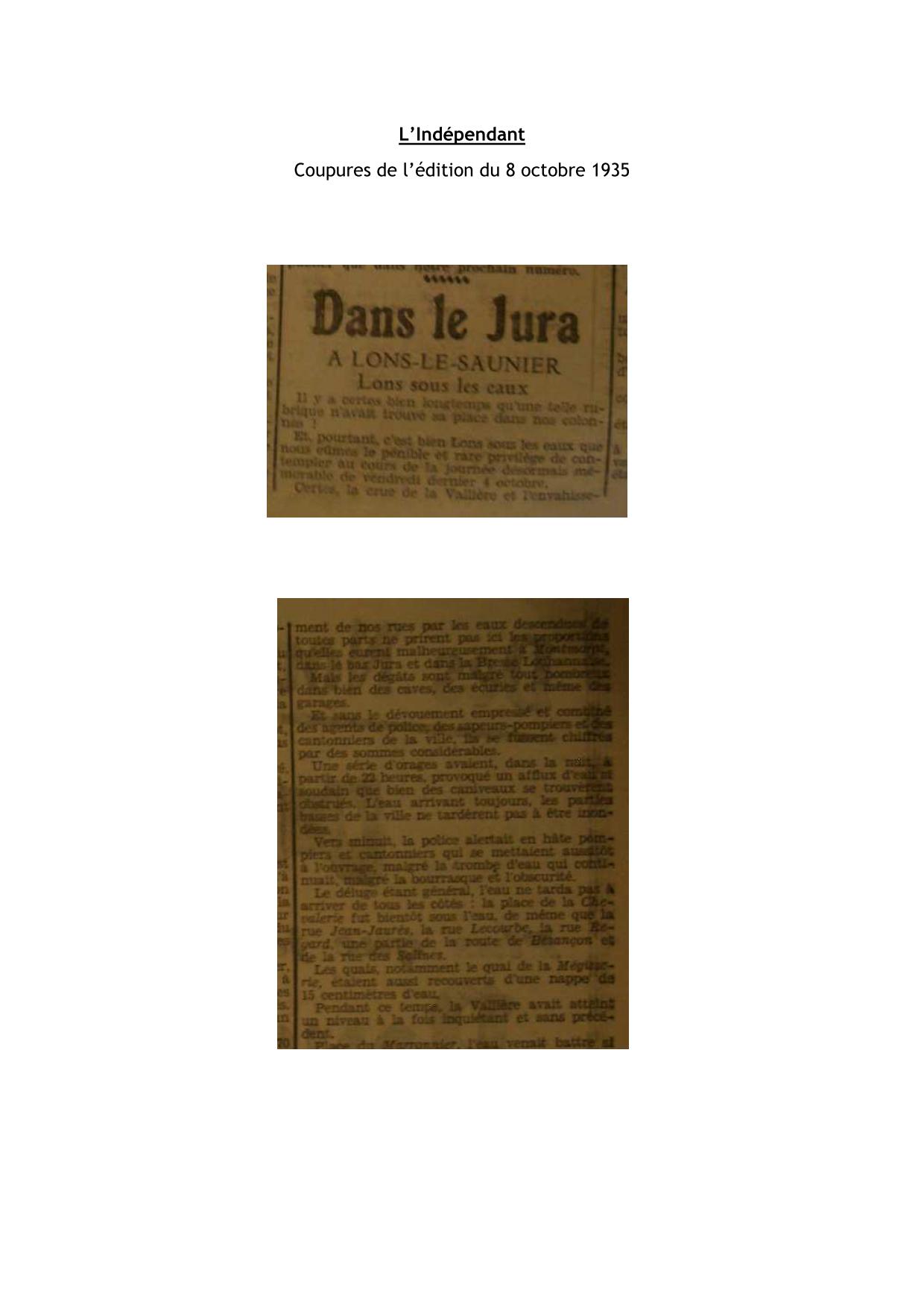 L'Indépendant 12 octobre 1935 Lons-le-Saunier Montmorot