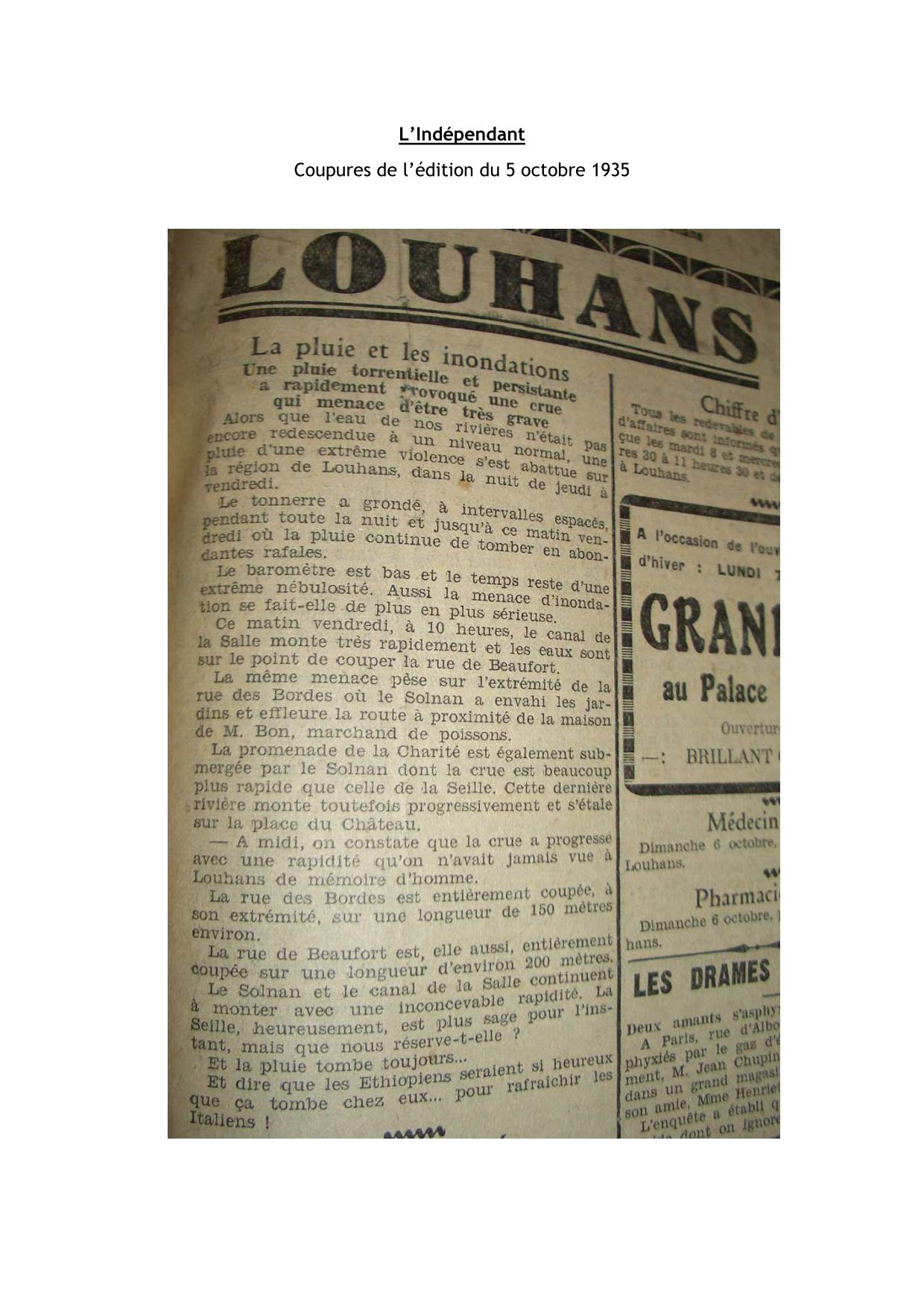 L'Indépendant 8 octobre 1935 Saône et Loire