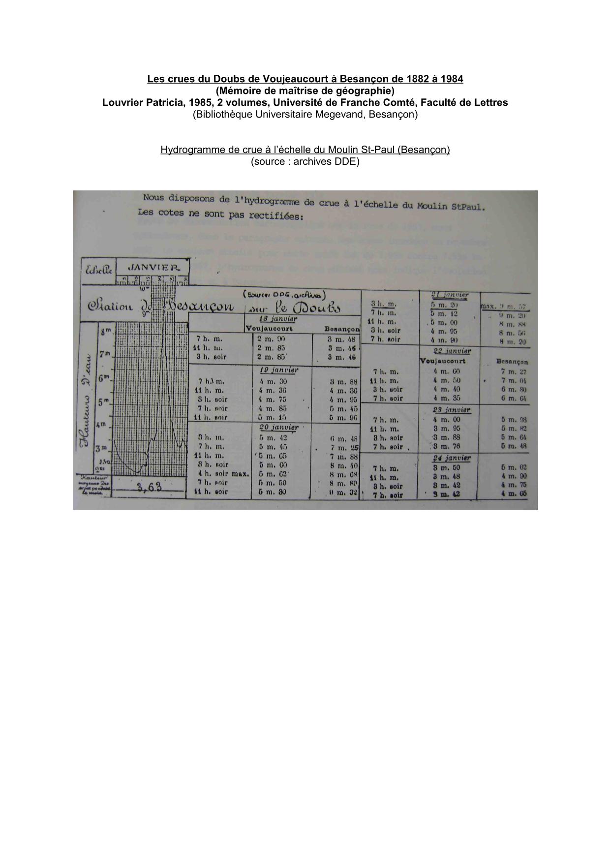 Hydrogramme Doubs 1910