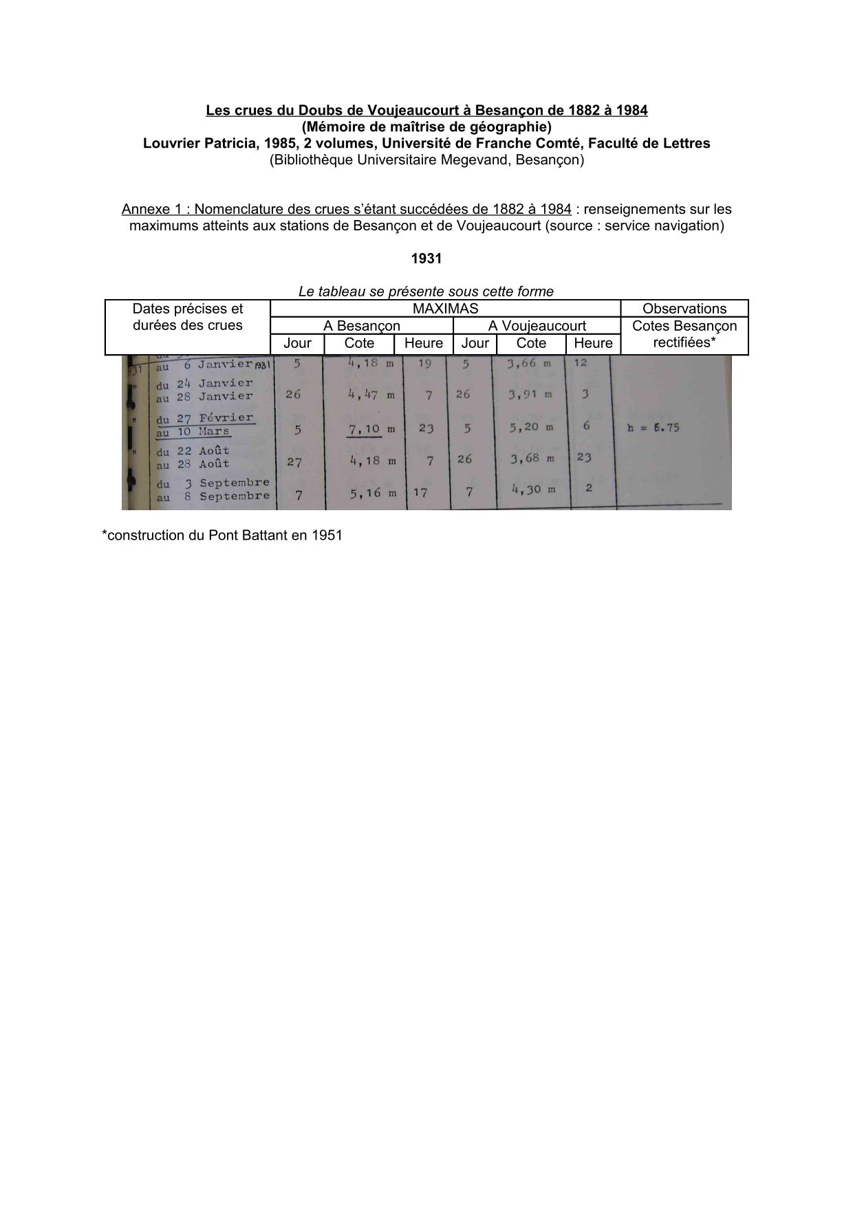 Cotes Doubs 1931