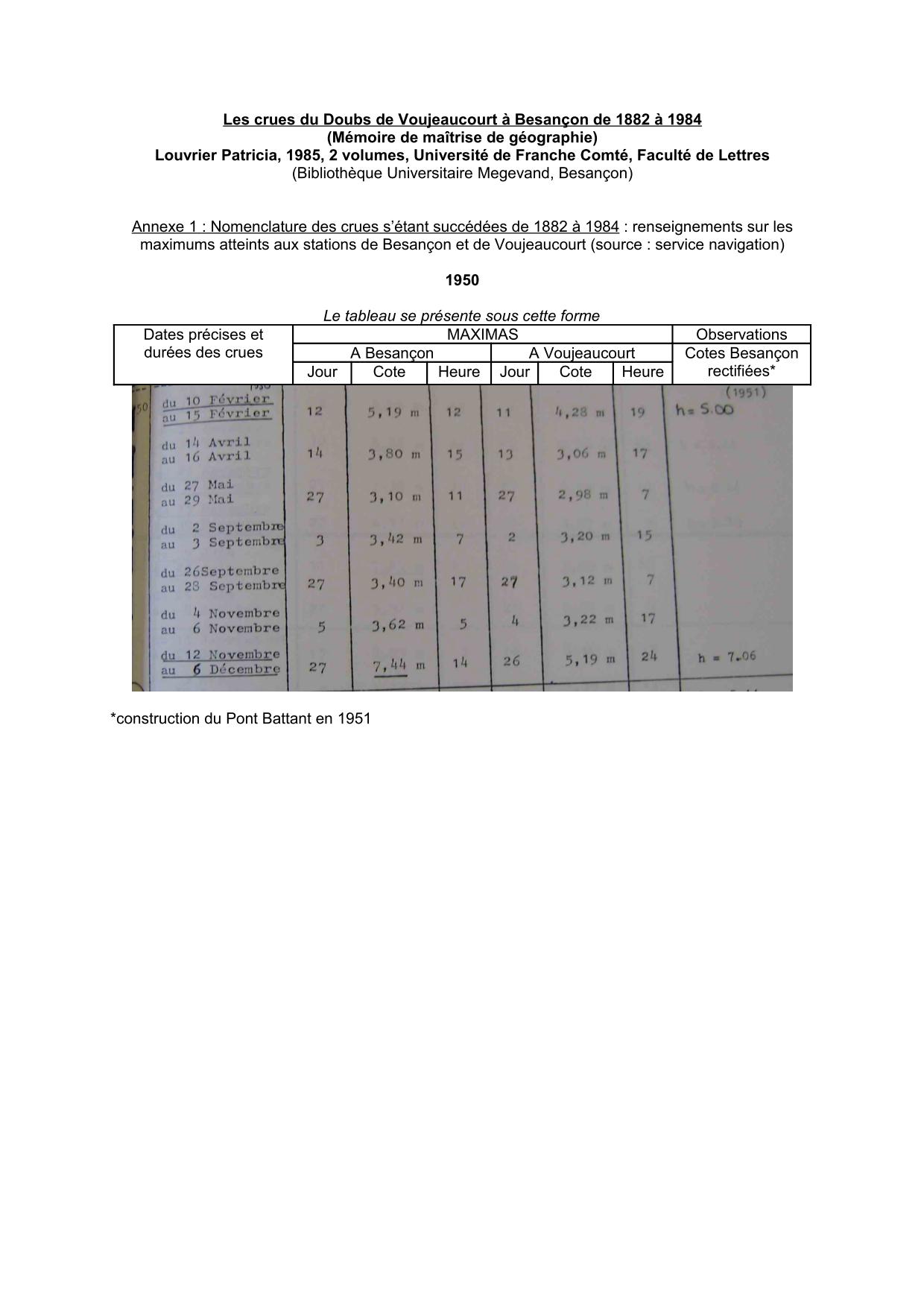 Cotes Doubs 1950