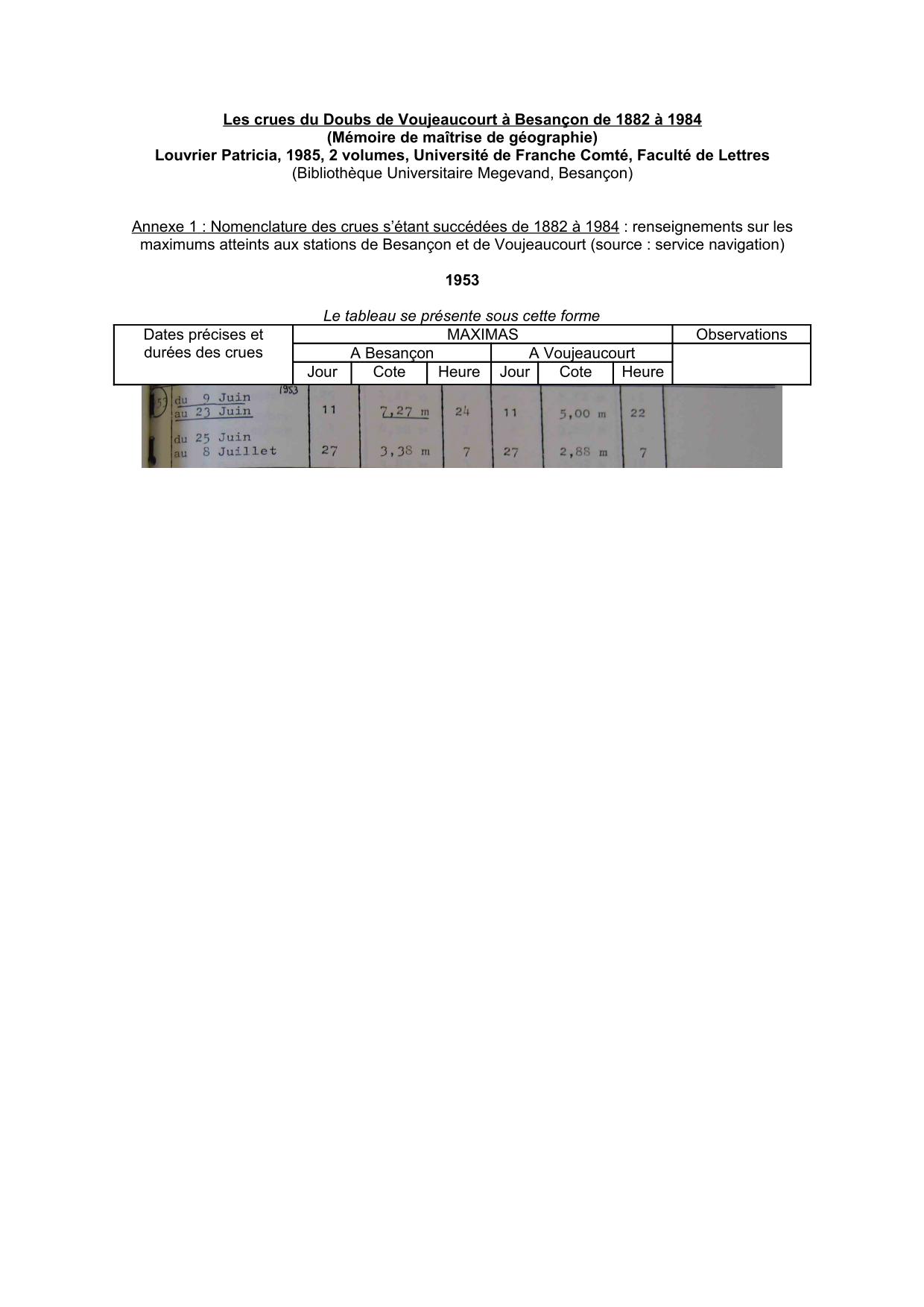 Cotes Doubs 1953