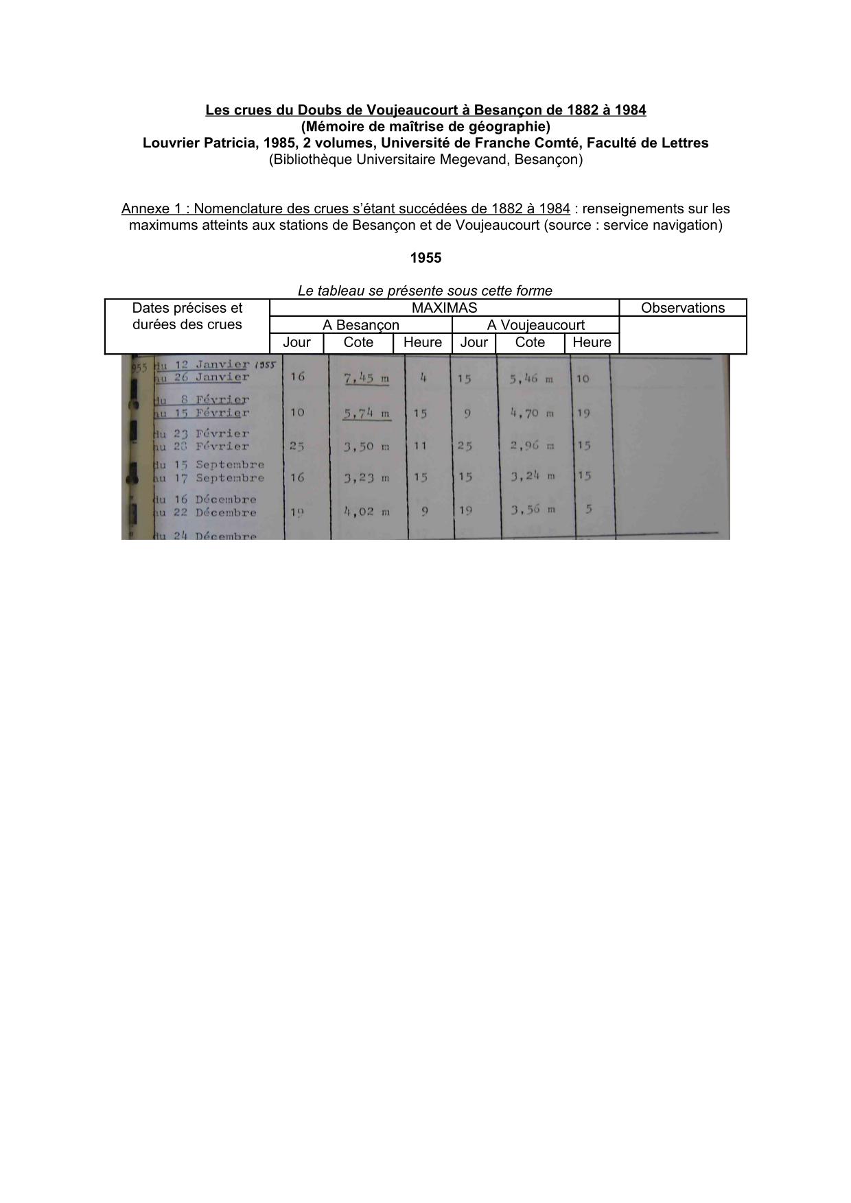 Cotes Doubs 1955