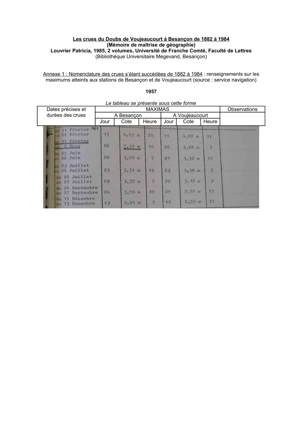 Cotes Doubs 1957