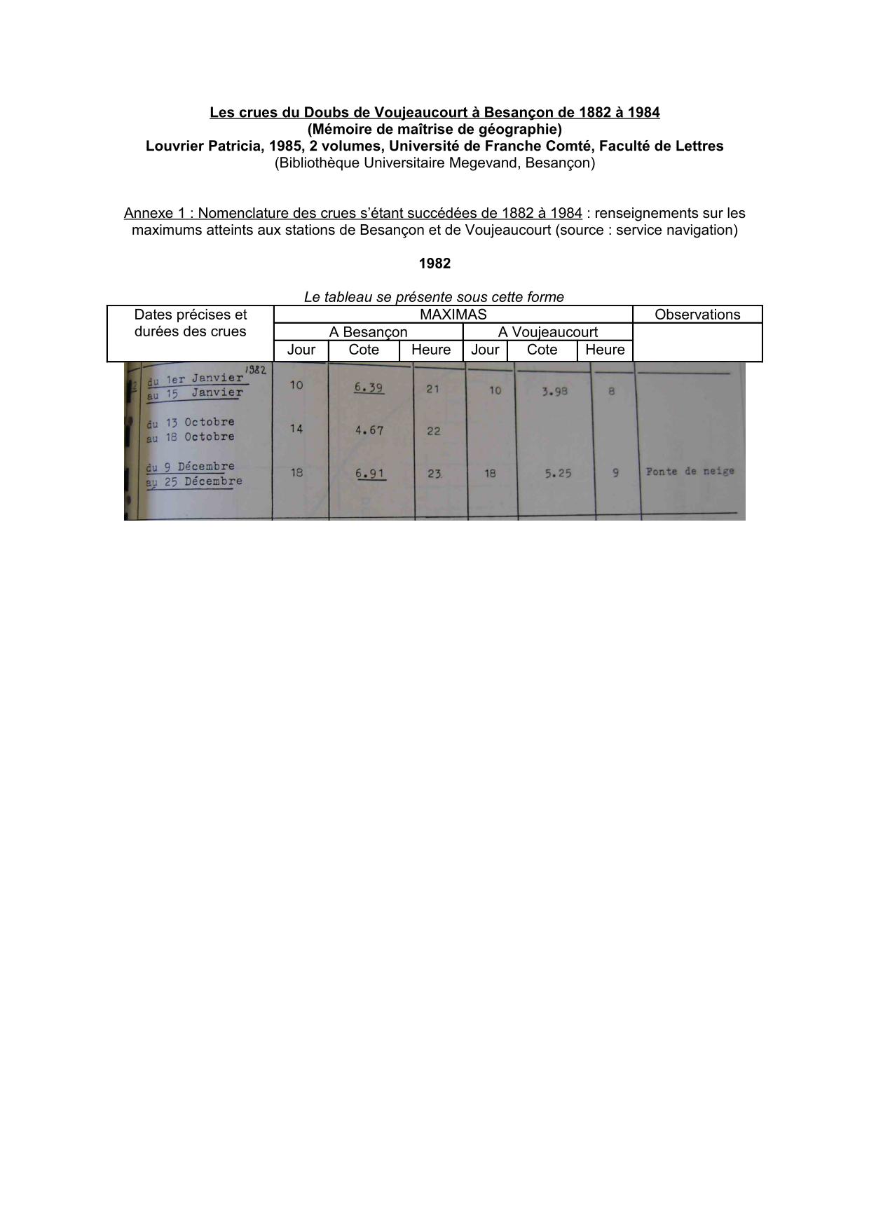 Cotes Doubs 1982