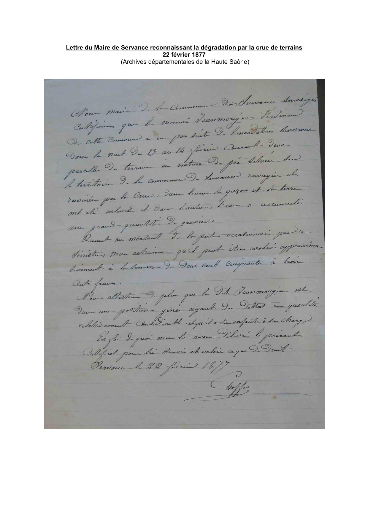 Servitude et rang supérieur en terme de risque inondation