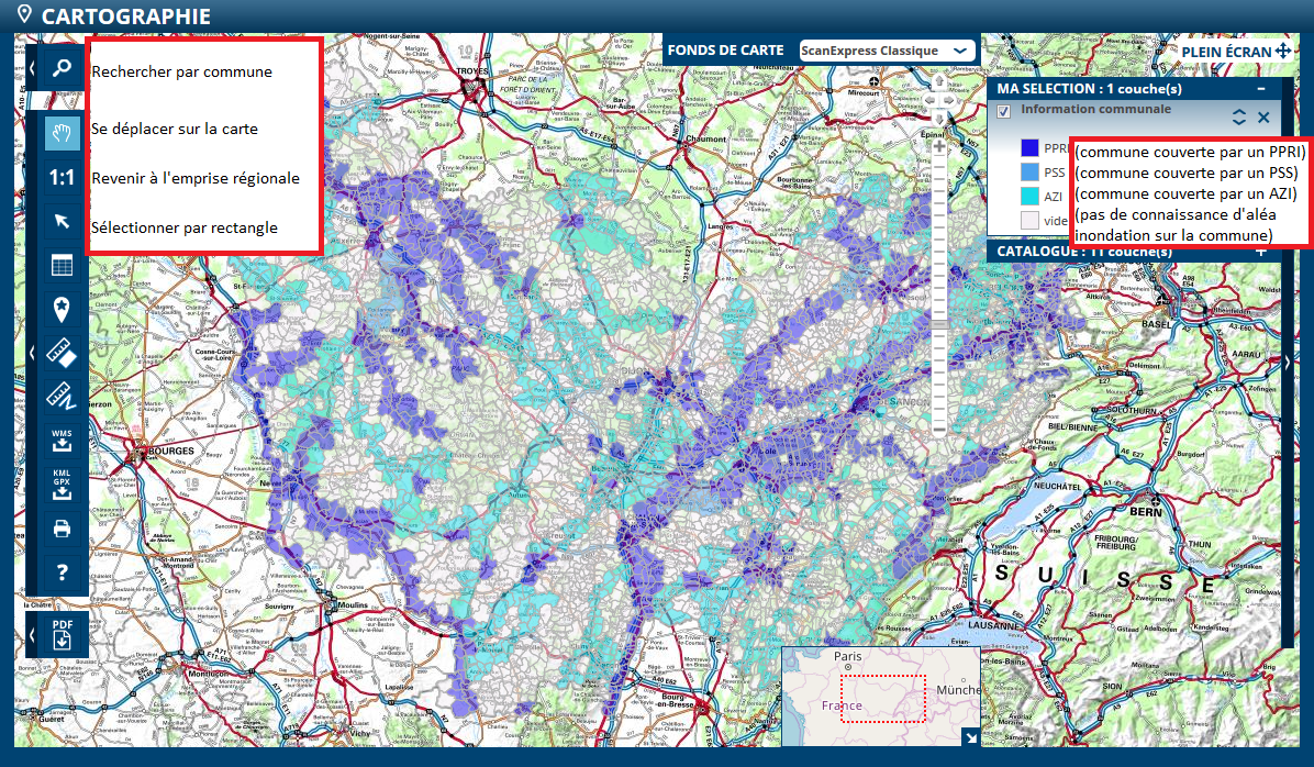Les outils cartographiques d'ORISK : les zones inondables en Bourgogne-Franche-Comté